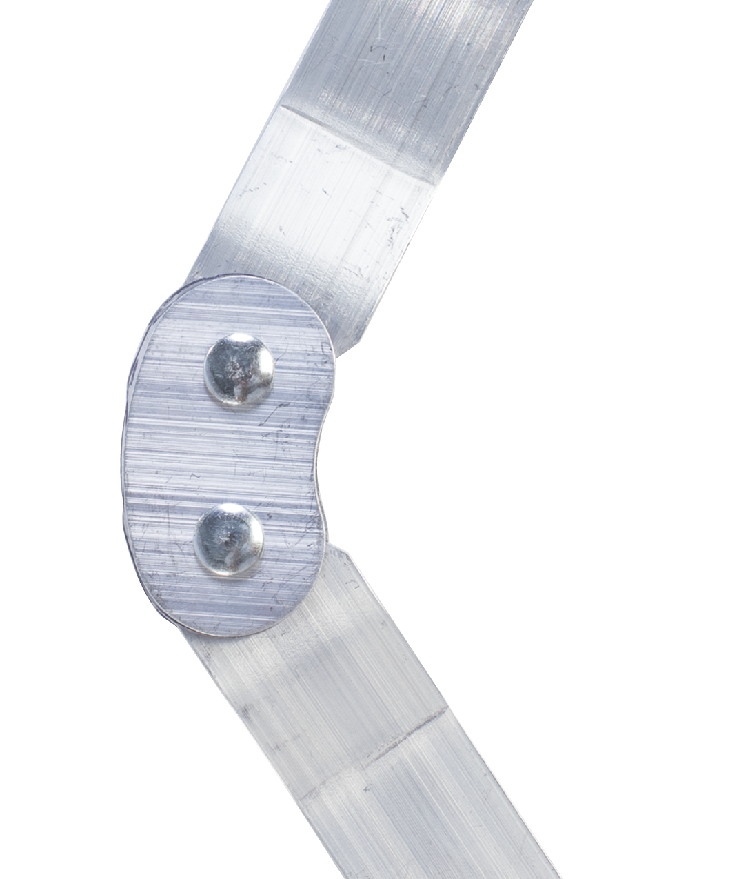 • 2 straps for fixation provided with elastic hook and loop fastener, that mold to the conical anatomy of the thigh and calf, preventing the orthosis from slipping