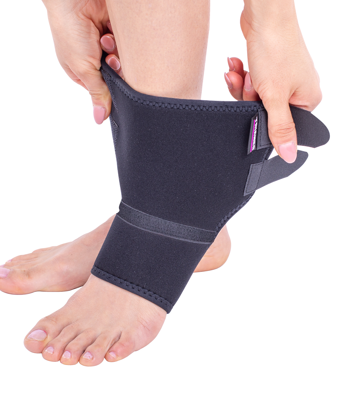 The orthosis can be used on both the left and right ankle.
