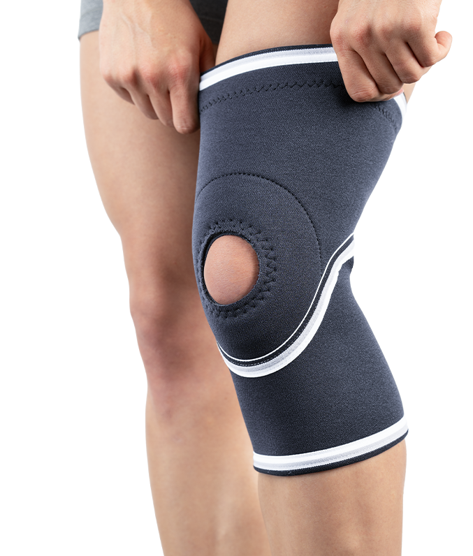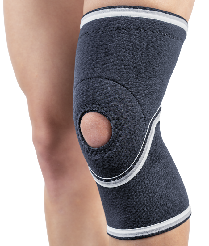 The orthosis stabilizes the knee joint and supports the knee cap without exerting pressure on it.