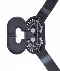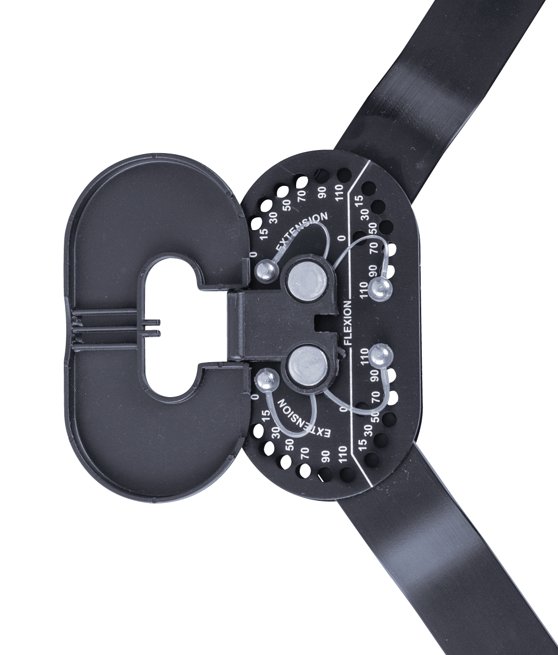 • 2 metal splints with mobile, adjustable and lockable articulations, one on each side. The adjustment device is easily accessed on the sides, coveredm with a plastic cap. The angle is adjusted with 2 rivets. The possibilities of limiting the movement are:
