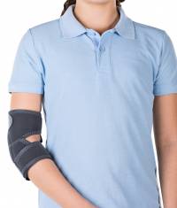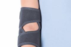 The orthosis is a support for the elbow, stabilizes and protects it.