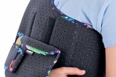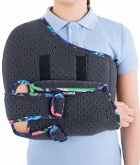 The orthosis is a support for the forearm, arm and shoulder. Due to its particular shape and the anatomical surface which it covers, it does not allow arm abduction and external rotation.