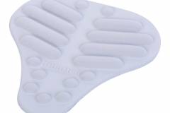 • a semirigid pad made of polyurethane foam, with textile liner, which produces a micromassage effect at lumbar level and helps to preserve local heat and protect the area. The shape and pressure points of the pad achieve a massage effect in the lumbar area. The lumbar pad is removable and can be positioned as needed.