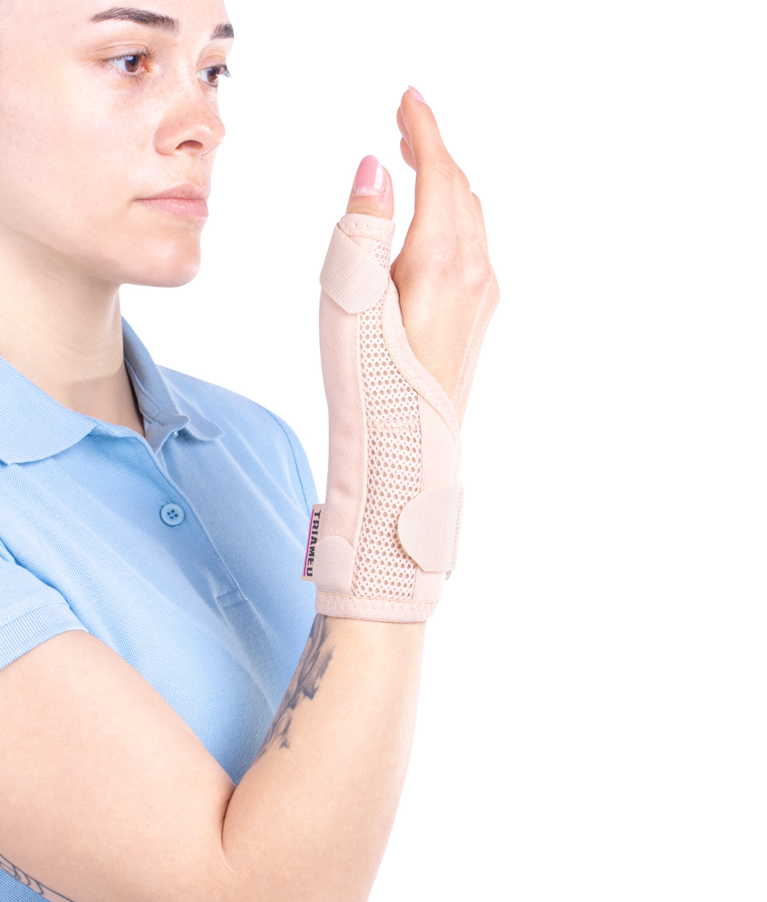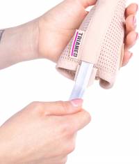 The orthosis can be used on both the left and right hand.