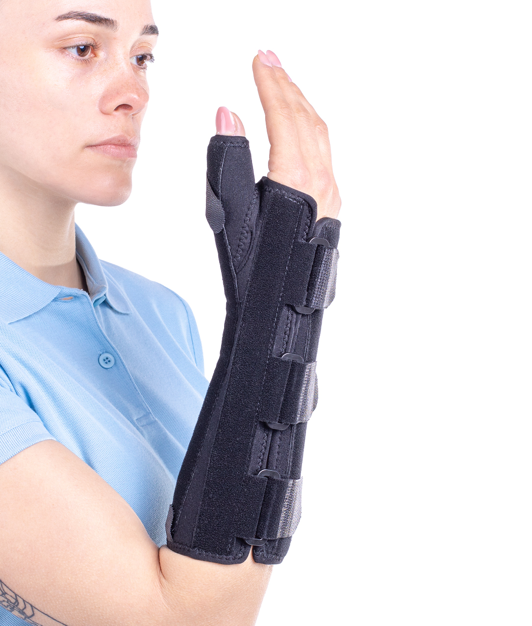 • one mouldable metal thumb splint