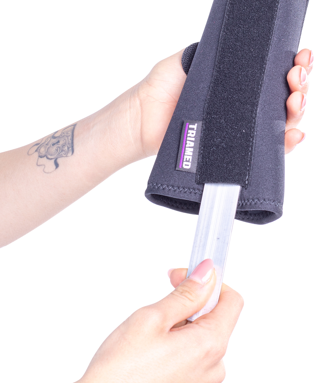 • 2 inserted plastic splints on the dorsal side of the hand.