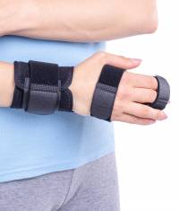 The orthosis stabilizes and immobilizes the joints of the hand and fingers II-V, and the radiocarpal joint.