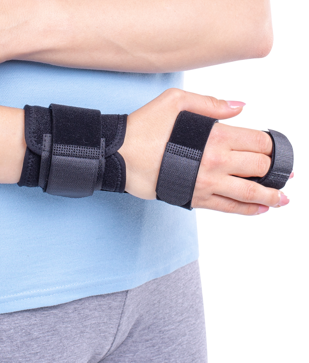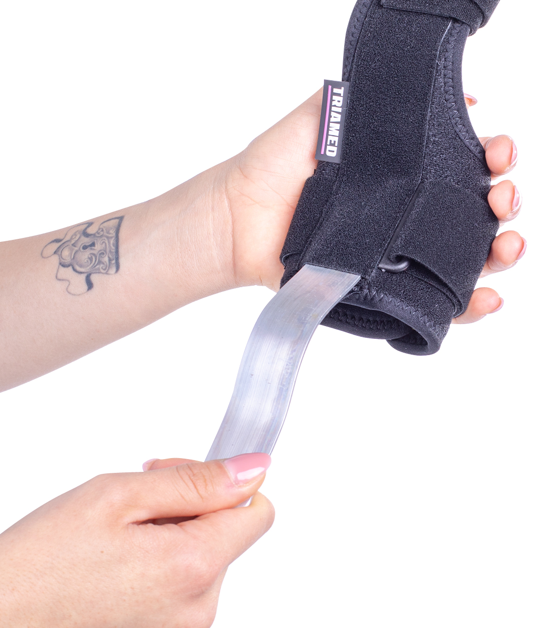 The orthosis can be used on both the left and right hand.
