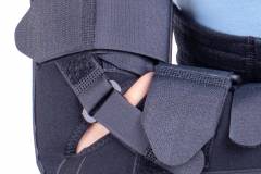 • 2 fixed metal elbow splints set at 90°, mouldable, of the same length as the orthosis