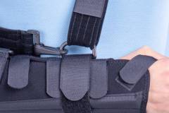 • adjustable support strap (with “crocodile” type fastener and protection sleeve), optional. The positioning is done on the first fixing strap on the forearm and over the opposite shoulder.