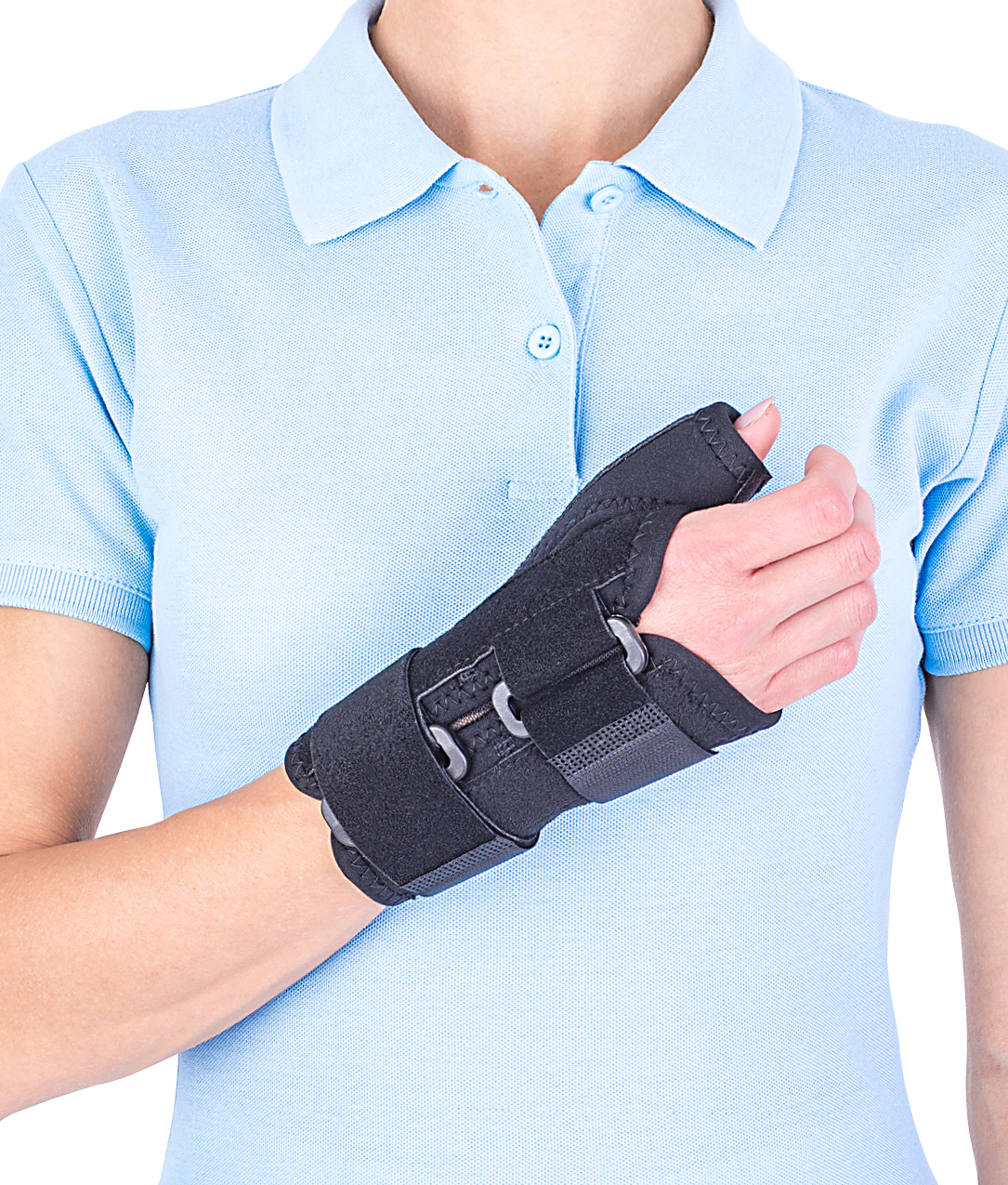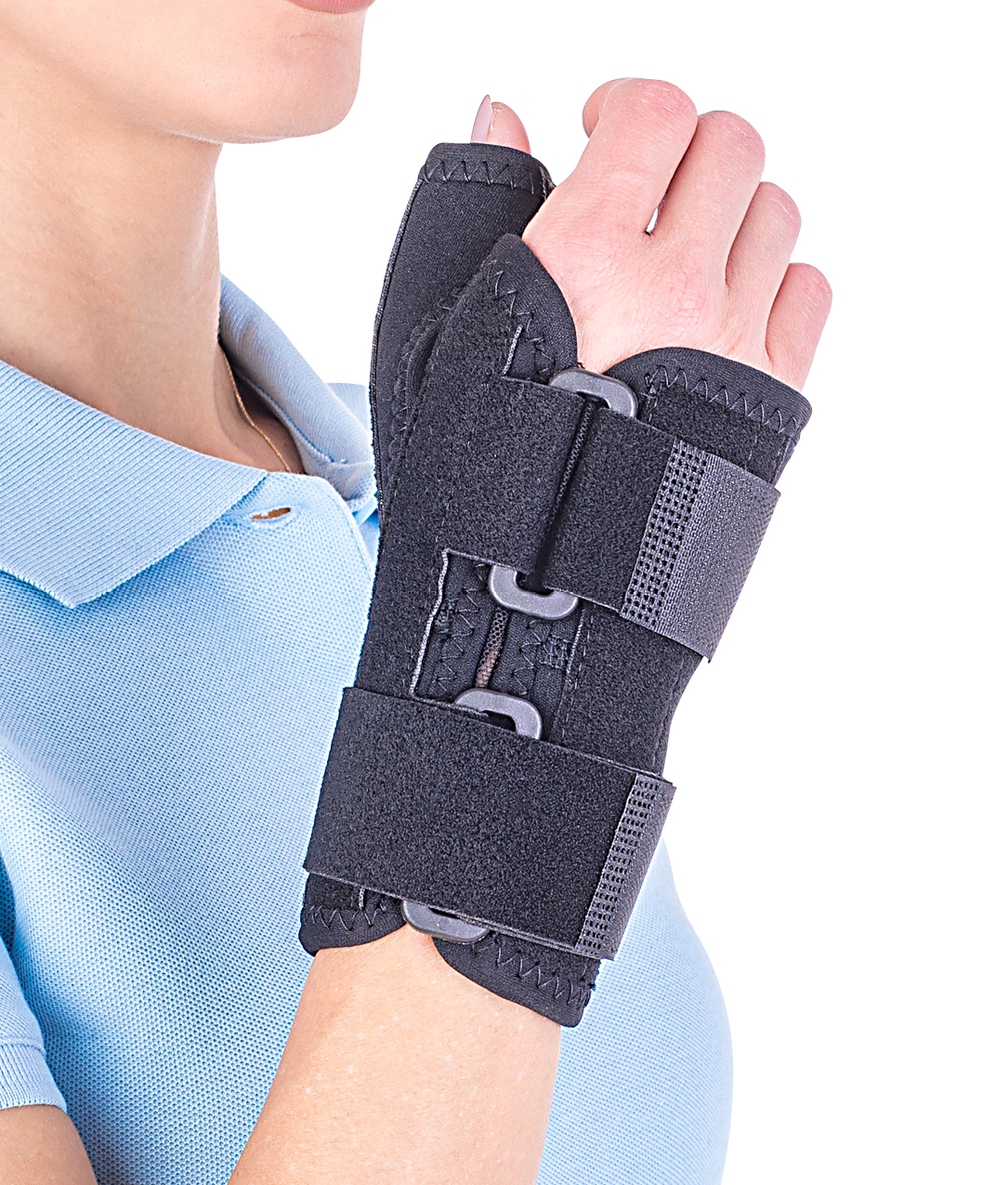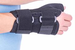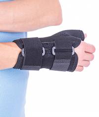 The orthosis stabilizes and immobilizes the metacarpophalangeal and interphalangeal joint of the thumb.