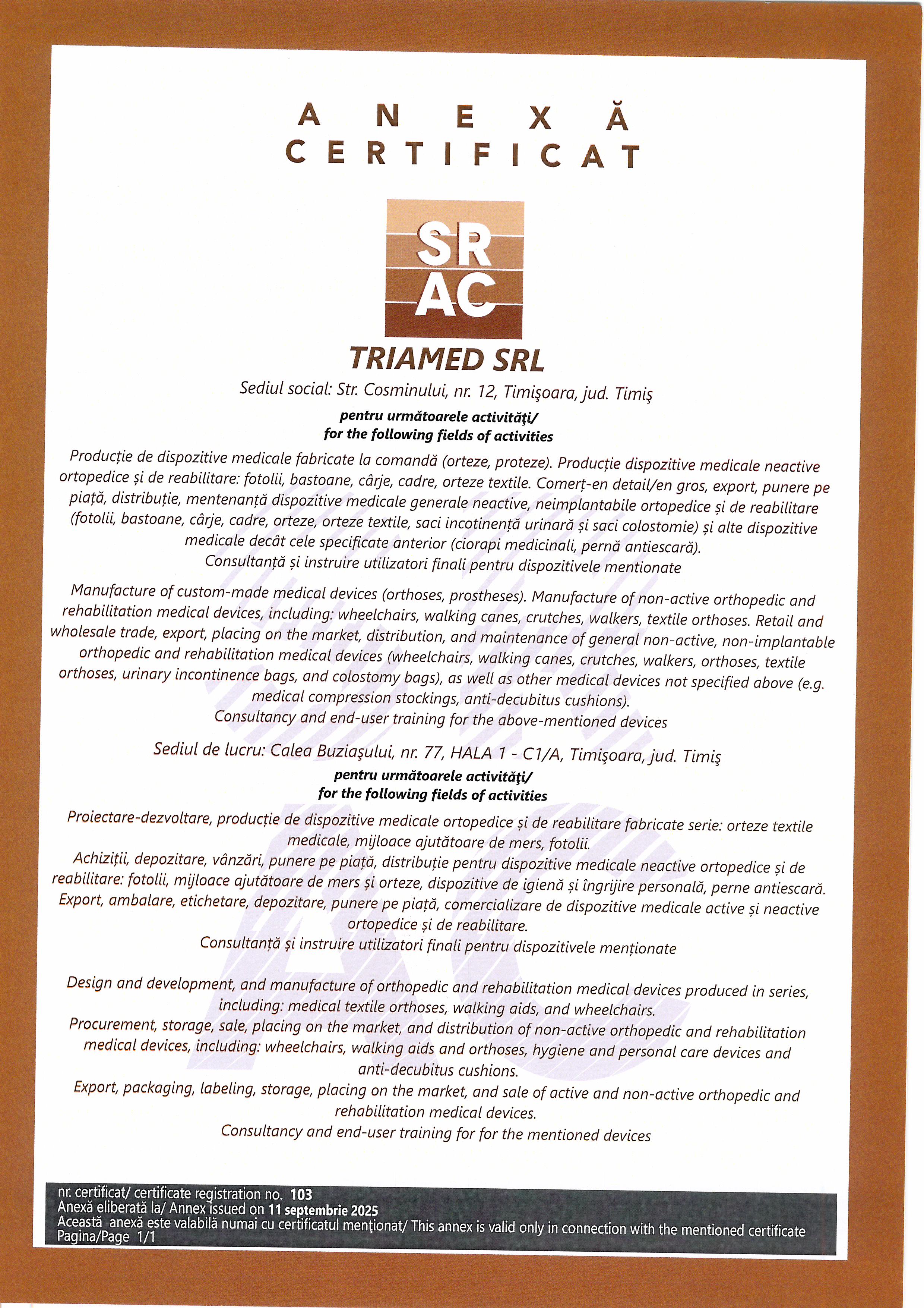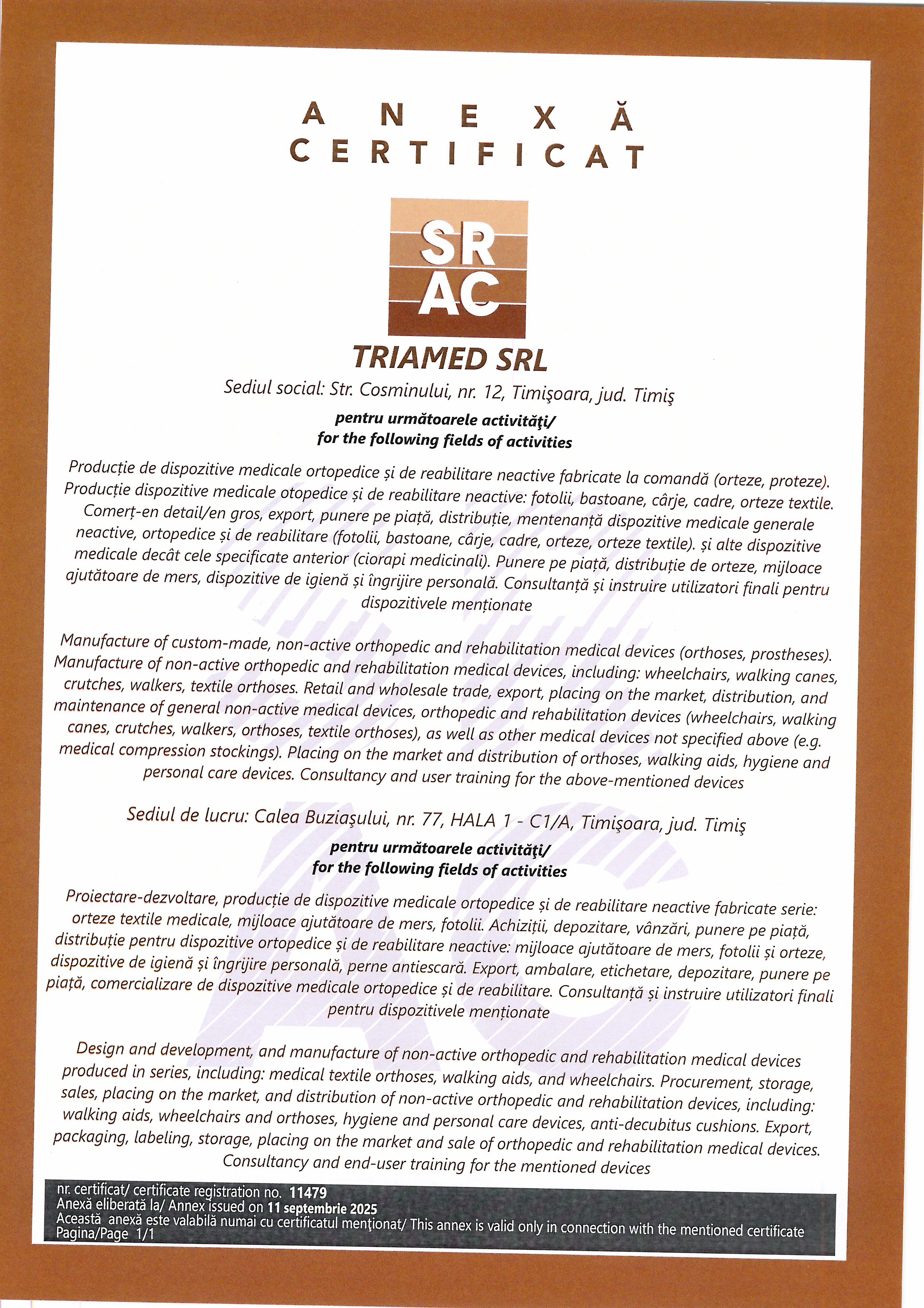 Standardul ISO 13485:2015 asigură că toate dispozitivele medicale produse de societatea noastră îndeplinesc cerințele de calitate și securitate conform MDR 745/2017. Aceste sisteme de management al calității îmbunătăţesc performanţele societăţii noastre şi dau încredere clienţilor şi tuturor părţilor interesate de produsele noastre